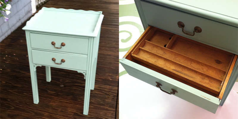 Chalk paint - have you heard of it yet? It's all the rage in England or so I hear. You may have heard of the British brand Annie Sloan or perhaps the All American CeCe Caldwell's. And then there's plenty of recipe's on how to make your own. Using this technique requires no prep work. After painting however the piece should be waxed. Here's a vintage sewing cabinet (with its removable thread drawer still intact!) that I treated with homemade chalk paint and finished with a coat of wax. It's a great little size and color. I'm looking forward to experimenting more with this process.